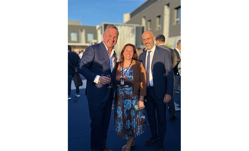 GZ-Herausgeber Christian Jürgens mit Matteo Farsura, Messechef der Vicenzaoro, und Michela Moneta, Presseverantwortliche der Messe