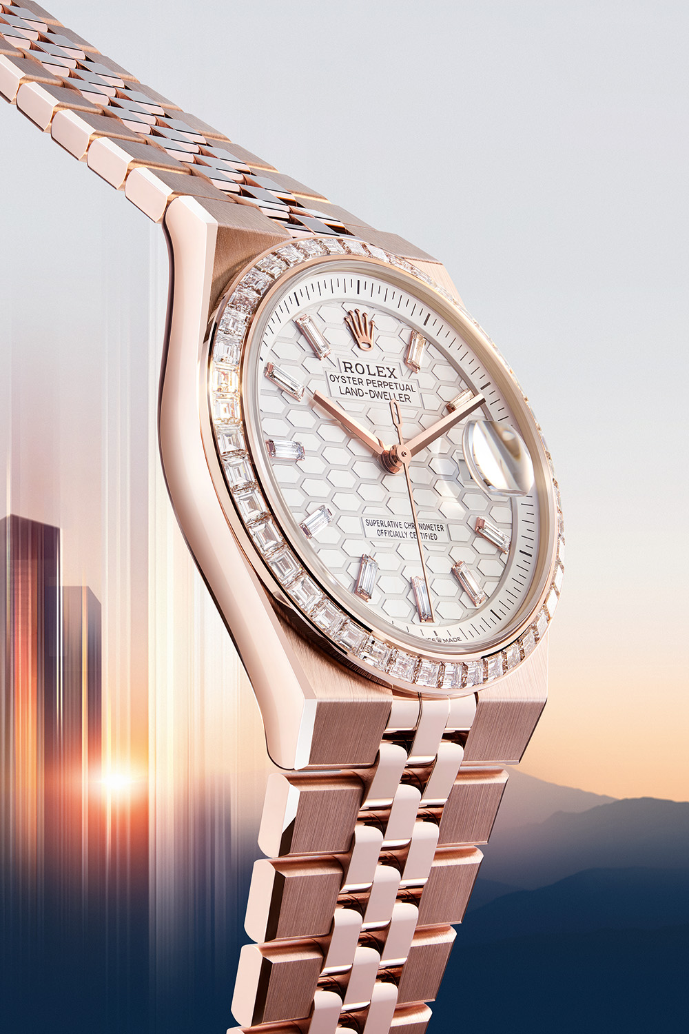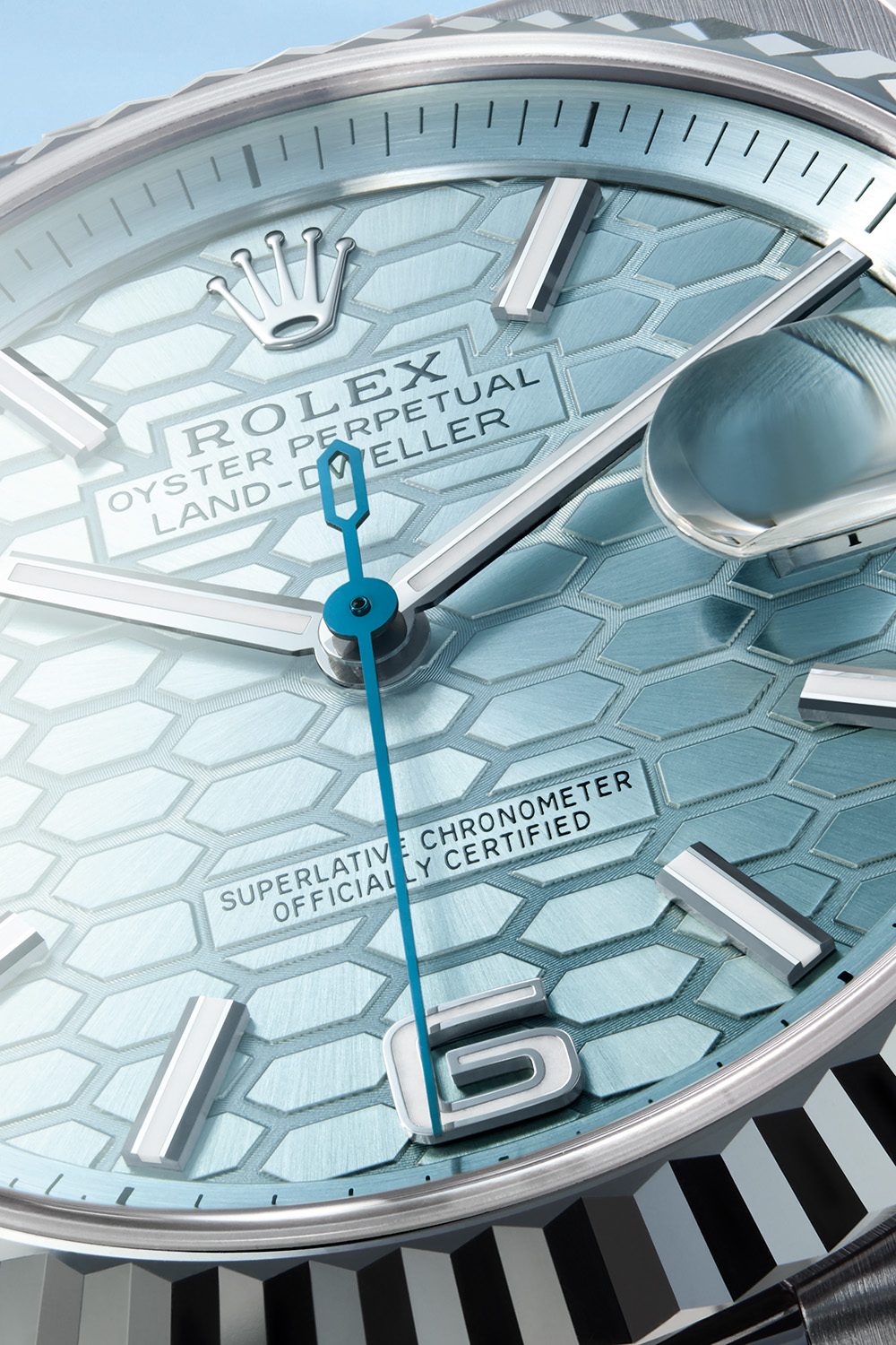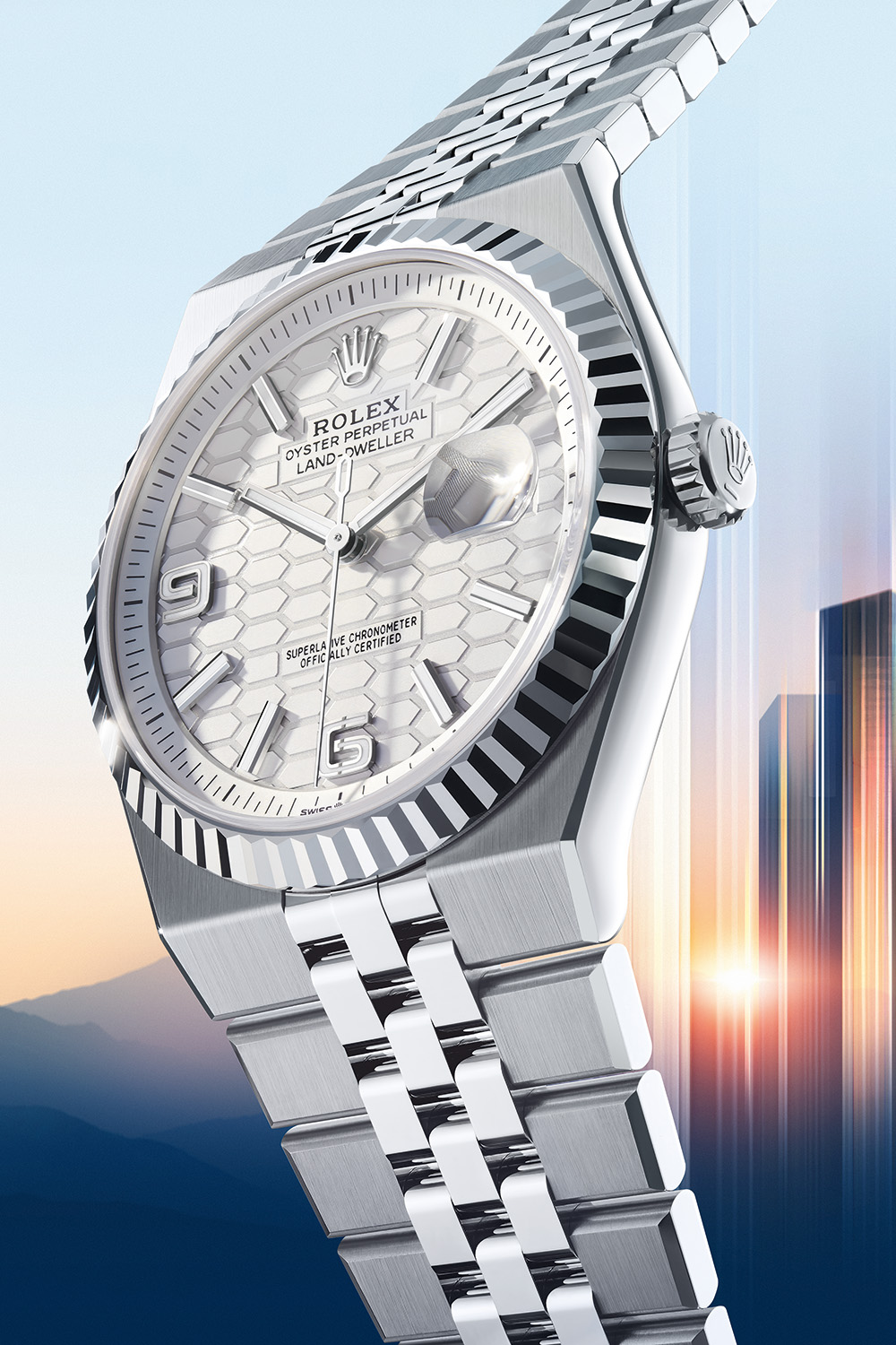 Gestalterisch setzt Rolex bei der „Land-Dweller“ auf ein Zifferblatt mit Wabenmuster, das in einen abgeschrägten Höhenring eingefasst ist. Das Muster ist von der Natur inspiriert und soll laut Rolex ein zeitloses Motiv darstellen. Die Uhrenmodelle mit Chromalight-Anzeige verfügen über nachleuchtende Indizes sowie speziell entworfene Zeiger, die jederzeit optimale Ablesbarkeit garantieren sollen.