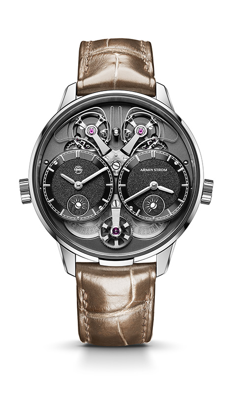Die „Dual Time GMT Resonance“ von Armin Strom gehörte zweifellos zu den absoluten Talking Pieces des letztjährigen Genfer Uhrenjahrgangs. Der unabhängigen Schweizer Uhrenmanufaktur aus Biel/Bienne war es gelungen, zwei Unruhen in einer Uhr zu kombinieren und miteinander zu synchronisieren, um eine außergewöhnliche Ganggenauigkeit zu erreichen. Dieses Jahr nun präsentiert Armin Strom mit dem Namenszusatz „Manufacture Edition Black“ eine weiterentwickelte Version dieser Uhr, die sich durch ein monochromes Design und ein Edelstahlgehäuse vom Original unterscheidet.