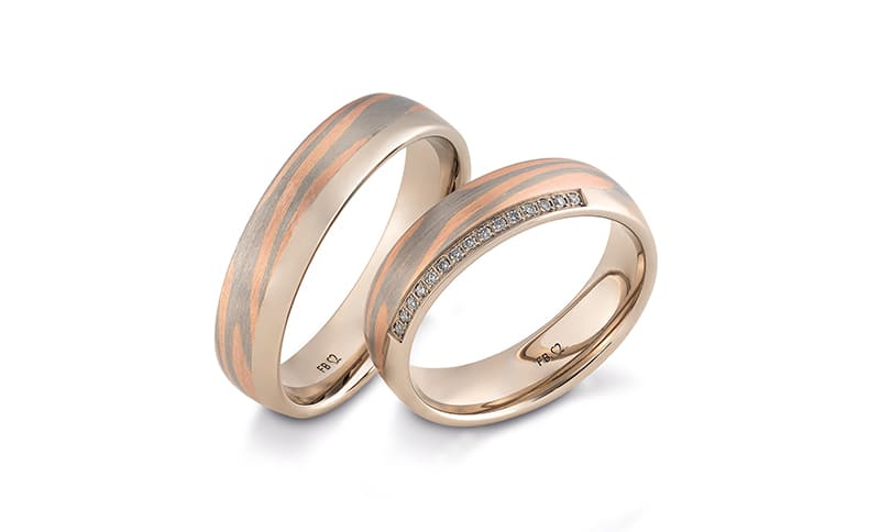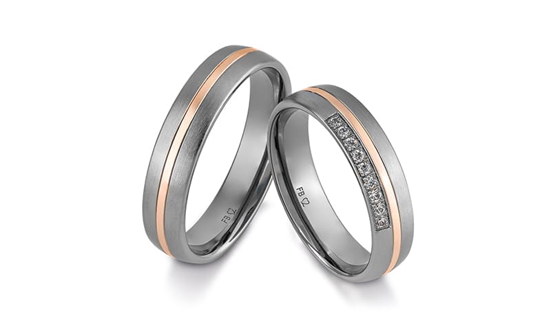 Breuning wird in diesem Jahr drei neue Trauringlinien auf der Inhorgenta präsentieren. So kommen frisch aus den Werkstätten: eine Tantalkollektion in Bicolor mit Gold, Memoires mit seitlichem Steinbesatz sowie eine Auswahl an mehrfarbigen Ringen, unter anderem in Mokume-Gane-Technik. Zwei neue Solitär-Laden ergänzen den Dummyturm mit verspielten Solitärringen und zeitlosen, klassischen Anhängern. Da bleiben ganz sicher keine Wünsche offen.