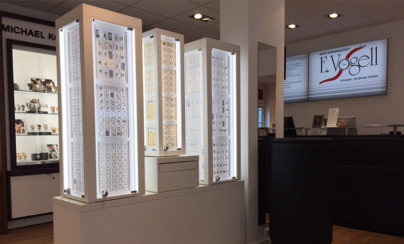 Als einer der besten Stephan-Koch-Kunden macht Juwelier Wirz in Paderborn nach eigenen Angaben im Jahr 250.000 Euro brutto Umsatz mit seinen drei Drehvitrinen.