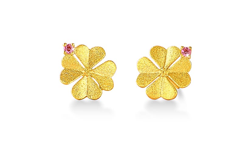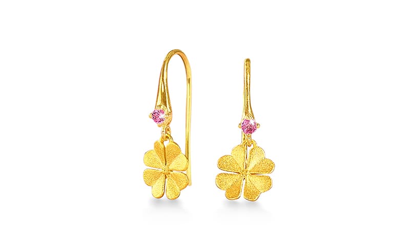 Die von Annalea Wolf entworfenen „Glücksbringer“ spielen mit dem Motiv des vierblättrigen Kleeblatts, dem bekanntesten Glückssymbol überhaupt. Aus Silber und 24-karätiger Goldplattierung und zusätzlich verziert mit pink Turmalin oder Zirkonia.