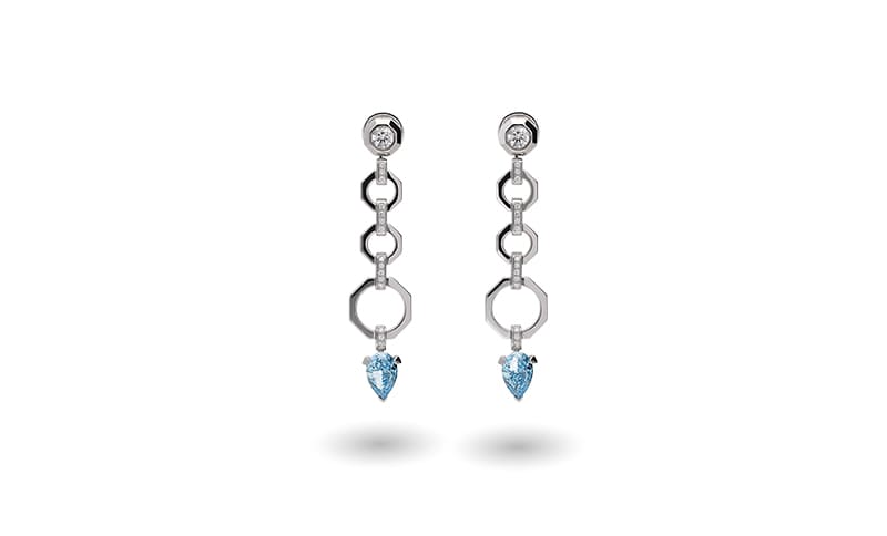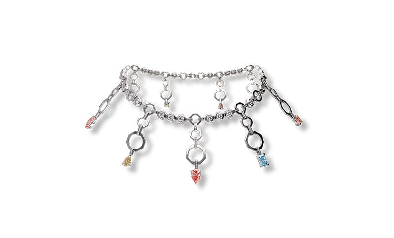 Die neue Linie ist inspiriert vom Wolkenspiel, das sich in der Abenddämmerung und im Morgengrauen mit den intensiven Farben des Himmels im Sonnenlicht vermischt. Der Schmuck hat die farbigen Nevermined Lab-Grown Diamanten in sanftem Gelb, pudrigem Rosa und himmlisches Blau im Zentrum, schreibt die Marke. Die Kollektion umfasst Ringe, Ohrringe und ein Collier. Letzteres wird als Highlight-Stück kommuniziert und besteht aus recyceltem 18-karätigem Weißgold, bietet insgesamt 19 Fancy Diamanten und verfügt über weitere Diamanten, allesamt aus dem Labor.