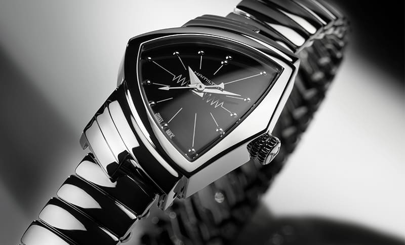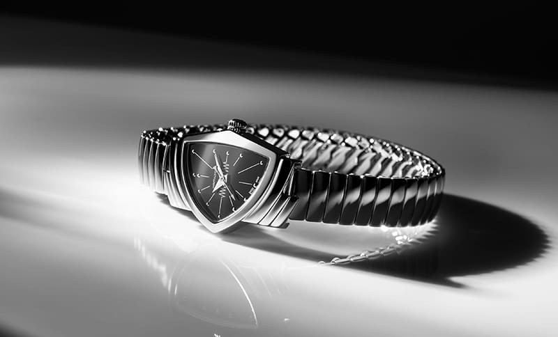 Viele neue Uhren und Partnerschaften sind erst im Laufe des Jahres kommunizierbar – eine Neuheit ist aber seit dieser Woche offiziell vorgestellt: die neue „Ventura S Quartz“ mit „Flex-Armband“. Sie führt die bekannte Kollektion, die schon Elvis Presley trug und die zur offiziellen „Uniform“ der Agenten in „Men in Black“ gehört, nun in einer kleineren Version mit besonderem Armband fort. Das nun lancierte Modell verfügt über ein Edelstahlgehäuse von 24x36 Millimetern und wird von einem Quarzwerk angetrieben. Mit der schlankeren Bauweise möchte Hamilton noch präsenter in der Welt der Damenuhren werden. Bisher gab es die Ventura im 32x50-Millimeter-Gehäuse als vormals kleinste Ausführung. Zudem sei die Herstellung des Armbands wegen der kleinen Gehäusegröße eine Herausforderung gewesen: „Zahlreiche Versuche waren notwendig, um die Flexibilität der Glieder zu perfektionieren und sowohl Haltbarkeit als auch Tragekomfort zu gewährleisten“, schreibt Hamilton dazu in der Pressemitteilung zur Neuheit.