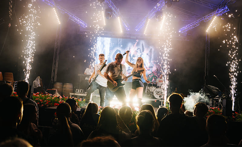 Seit sieben Jahren ist die Messe ihre berufliche Heimat. Vom Werkstudentenjob bis Deputy Exhibition Director hat sie fast alle Stationen durchlaufen: Marketing, Halle C1, Upgrade der Halle A1, Trendfactory – und bis heute ist sie federführend für den Inhorgenta Award verantwortlich, der als internationales Aushängeschild der Veranstaltung gilt. Inzwischen lenkt sie mit Kollegin Stefanie Mändlein die Geschicke der Messe – „wir brennen dafür, die Inhorgenta jedes Jahr noch besser zu machen“, sagt sie. Doch freitags packt sie häufig um: Statt Businesslook heißt es Bühnenoutfit. Mit ihrer Band tourt sie durch ganz Deutschland, singt auf Stadtfesten, Firmenevents und gleich zwei Volksfest-Highlights, dem Cannstatter Wasen und dem Oktoberfest im Schottenhamel-Zelt. Bis zu 12.000 Menschen performen mit, während Lena Song für Song Kostüm und Choreo wechselt.
