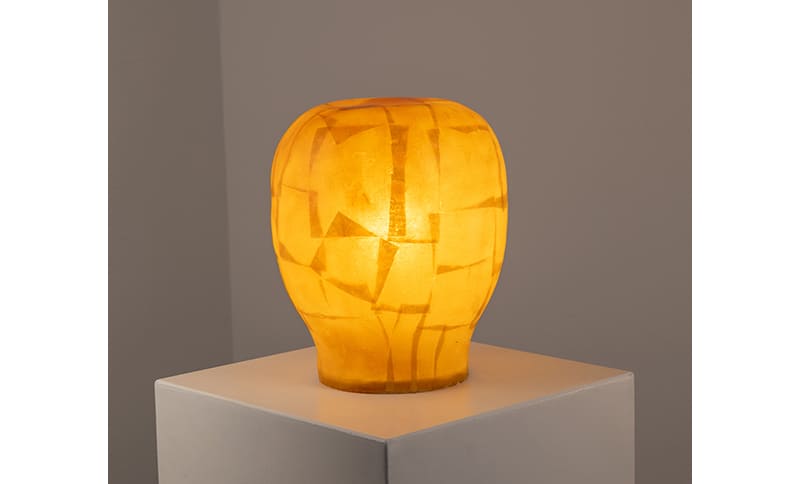 Der Londoner Designer und Maker Jacob Marks setzt sich für die Wiederbelebung eines nachhaltigen Materials ein, das im Laufe der Zeit durch Kunststoff ersetzt wurde: „Remembering, Forgetting“ ist eine Weiterführung von Marks’ fortlaufender Erforschung von Kiefernharz. Dieses Material, das von Kiefern-, Tannen- und Zedernbäumen natürlich abgesondert wird, sobald ihre Rinde beschädigt ist, kann über die gesamte Lebensdauer eines Baumes geerntet werden, ohne ihm zu schaden. Jacob Marks experimentierte mit der Kombination von Harz mit unterschiedlichen Materialien, ins-besondere mit Textilien, und zeigt in der Ausstellung daraus entstandene Objekte wie Leuchten, Griffe oder Gefäße.