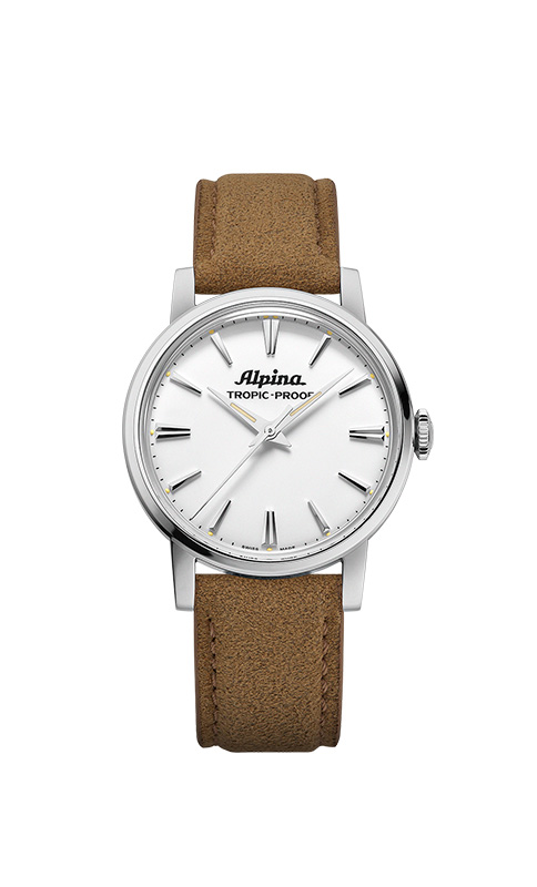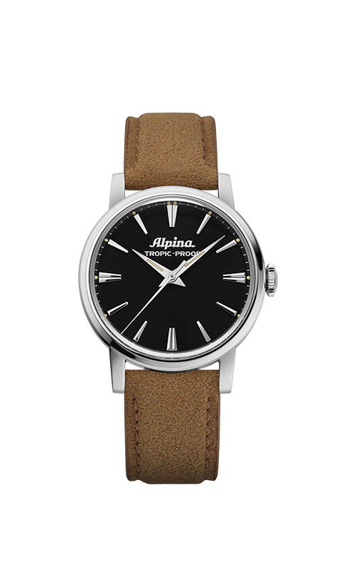 Die Schweizer Uhrenmarke Alpina stellt mit der „Heritage Tropic-Proof“ Handaufzug eine Neuauflage ihres Modells aus dem Jahr 1965 vor. Die Uhr knüpft damit an eine Zeit an, als robuste Armbanduhren für Abenteurer und Weltreisende entwickelt wurden und 34 Millimeter Durchmesser des dreiteiligen Edelstahlgehäuses bei Herrenuhren noch Standard waren. Zum Glück ändert Alpina auch in der Neuauflage nichts an diesem Format, was ihren Vintage-Charakter umso mehr betont.