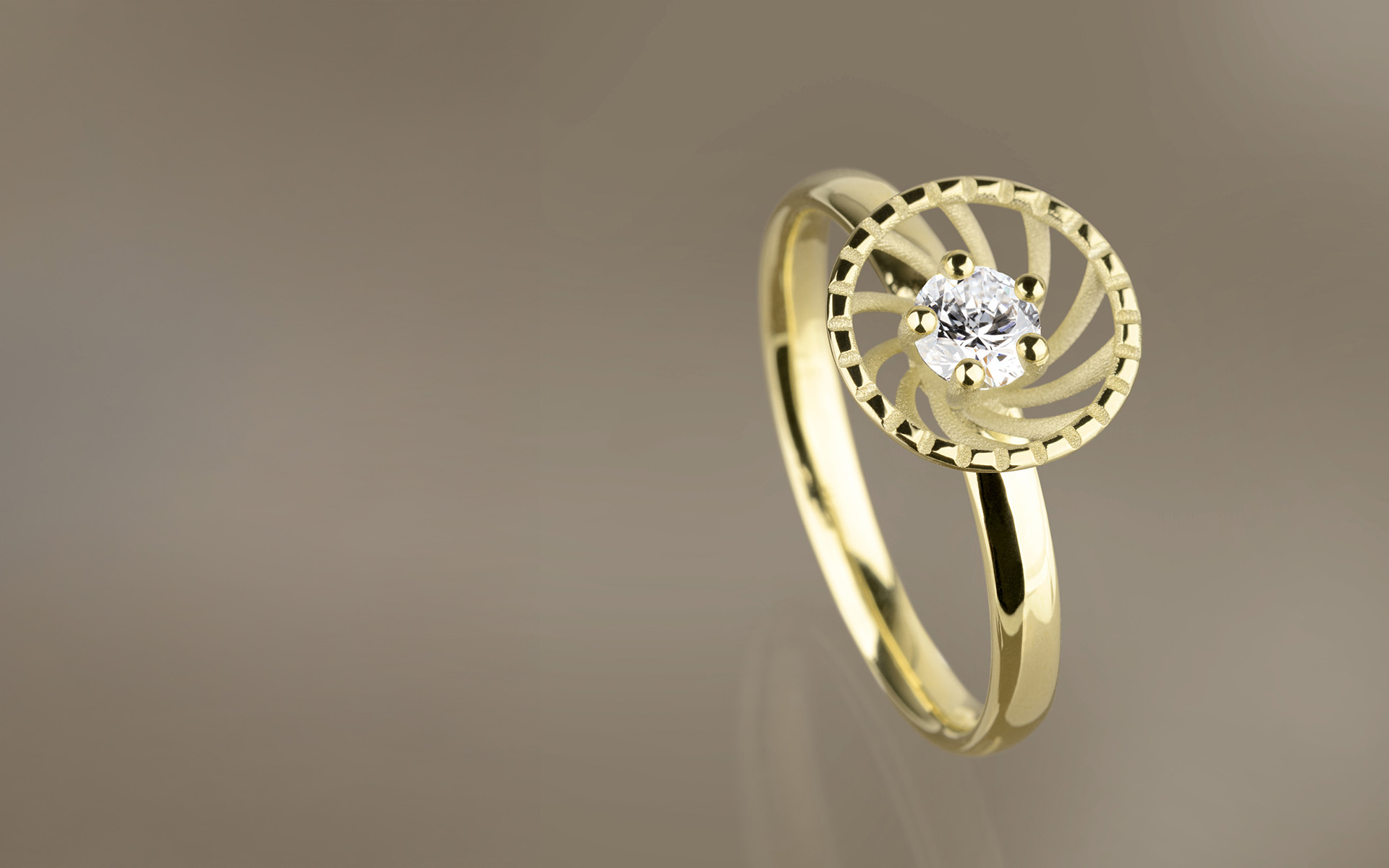 Die Ernstes-Design-Tochter Sharvin kombiniert ihren Designanspruch mit den neuen Freiheiten der synthetischen Diamanten. Die aktuelle Neuheit ist ein durch und durch anspruchsvoll produzierter Ring in 585-Gelbgold in Kombination mit einem 0,25-ct.-Diamanten. Selbstverständlich gibt es dazu auch passende Anhänger und Ohrstecker.