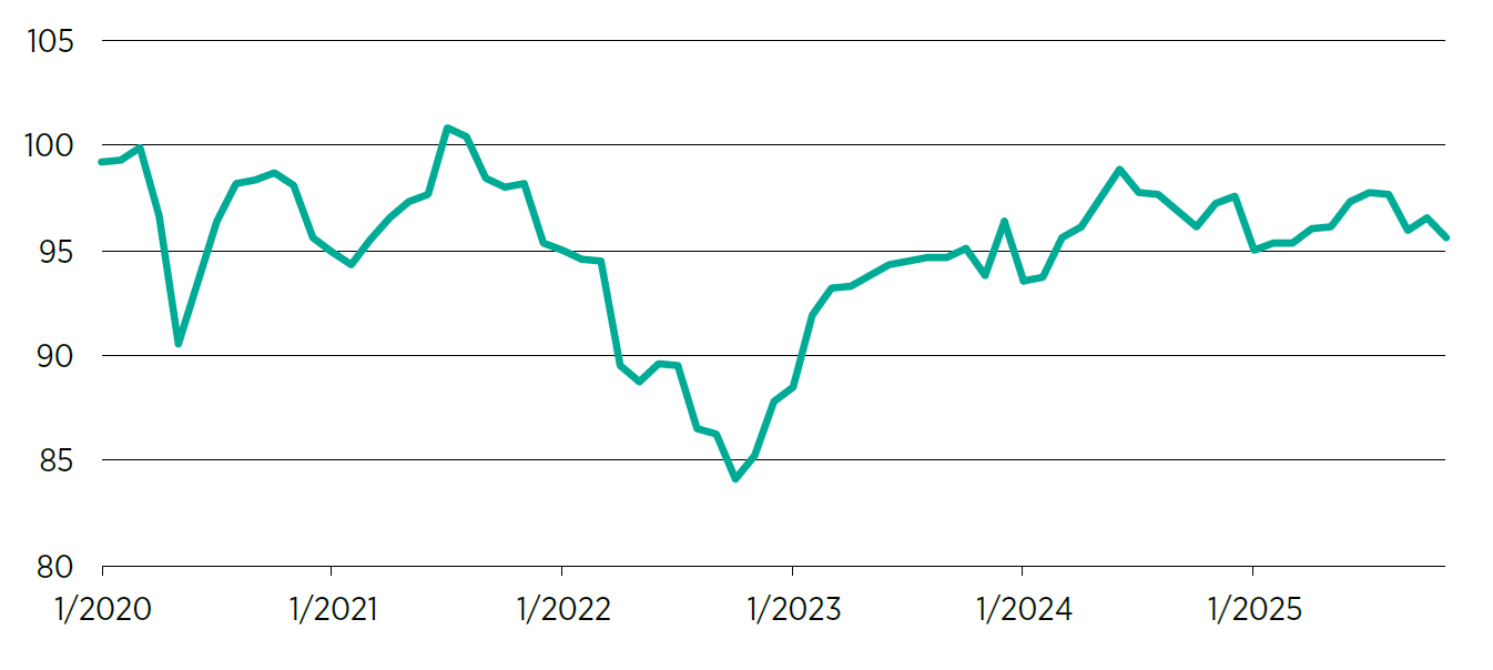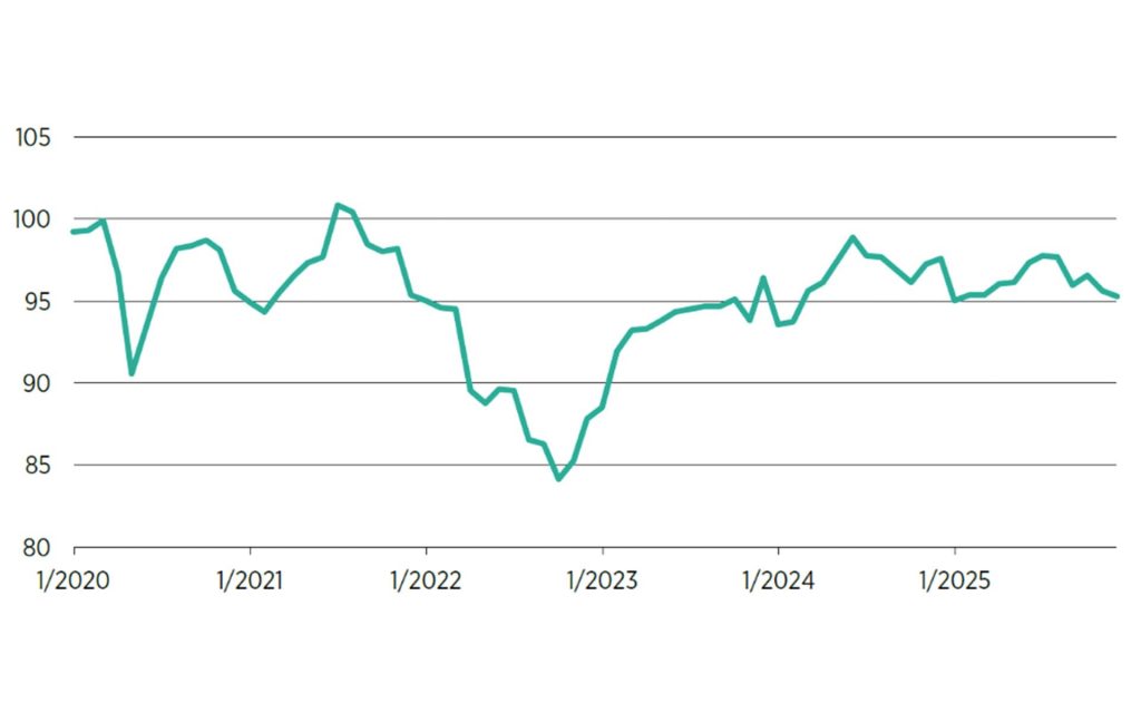 Vergleich zum Vormonat ist dies ein Rückgang um 0,95 Punkte. Die Verbesserung der Kon-