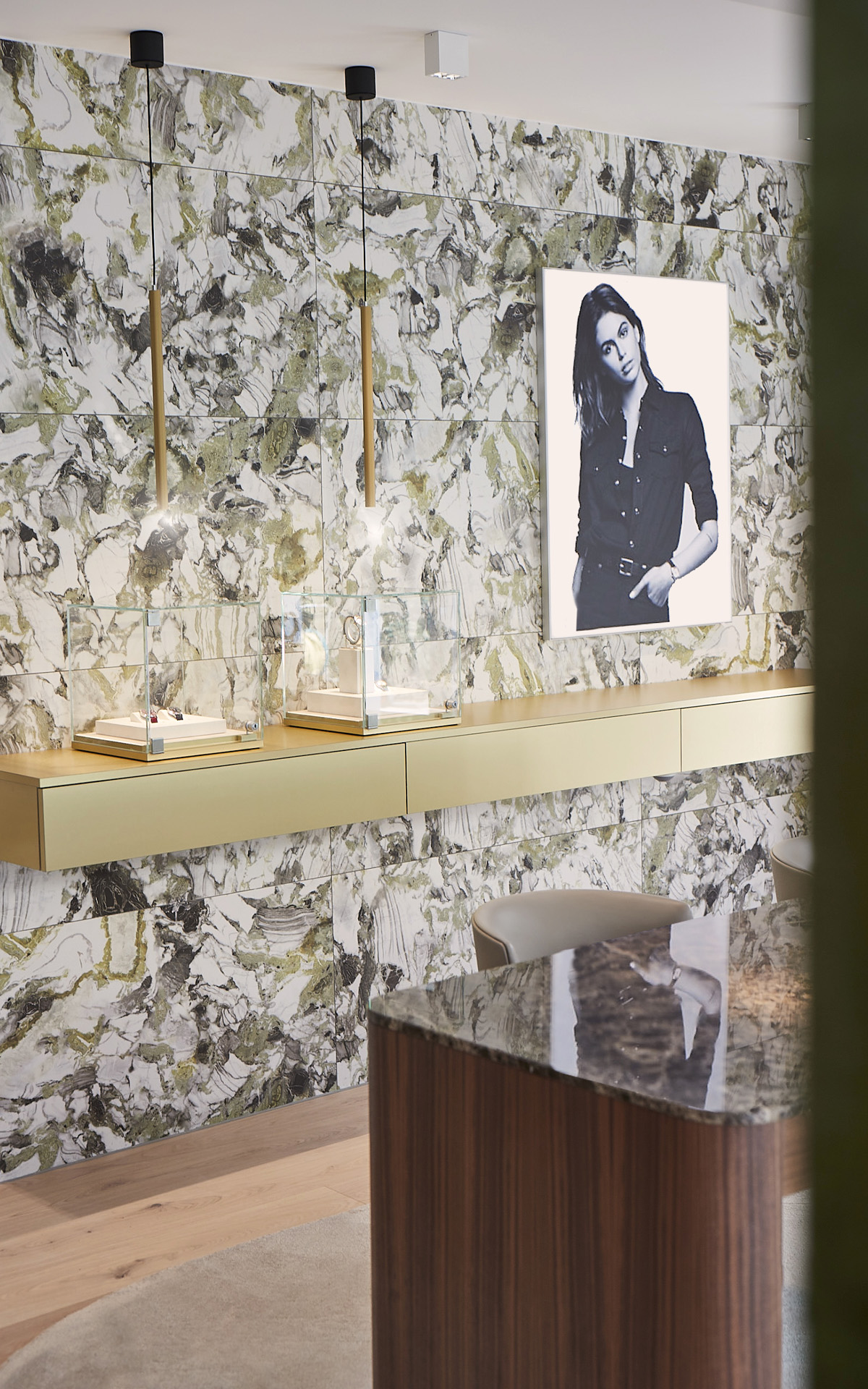 Die DNA entsteht aus mehreren Faktoren. Natürlich gehören Marken und Standort dazu, aber ganz entscheidend sind die Menschen: die Geschäftsführung und das Team im Laden. Wir versuchen herauszufinden, welche Haltung sie haben und was sie ausstrahlen möchten. Daraus entwickeln wir eine Designsprache. Deshalb sehen Projekte von uns auch völlig unterschiedlich aus – Grimaldo und Laufer etwa haben gestalterisch kaum etwas gemeinsam, obwohl beide Juweliere sind. Jedes Konzept wird individuell aus der DNA des Hauses entwickelt.