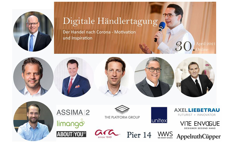 Die Tagung wird mit der Keynote-Speech von Günter Althaus (Assima Hoch2) begonnen, anschließend werden verschiedene Referenten rund um das Thema „Der Handel nach Corona – Motivation und Inspiration“ digital vortragen – „Für Händler ist es gerade in diesen Zeiten die wichtigste Frage“, so Dominik Benner, CEO von The Platform Group. Referenten sind dabei u.a. Stefan Richter (Pier 14), Sven Faust (About You), Christian Keller (Limango), Lothar Schäfer (vormals Appelrath Cüpper) und Patrick Röseler (ARA Shoes AG). Die Herausforderungen aus Verbandssicht werden u.a. Gerhard Albrecht (Unitex) und Günter Althaus im Gespräch vertiefen. Ein ganz wichtiges Thema wird Nachhaltigkeit und Vintage-Bekleidung sein: Der CEO von ViteEnVogue, Marcus Schönhart, wird auf die neuen Kundenanforderungen und den Milliardenmarkt der Vintage-Kleidung eingehen. Saydou Bangoura, Geschäftsführer von WeWantShoes und TheBrandShow.TV wird auf die Herausforderungen der digitalen Order für Händler eingehen. Der Keynote-Speaker Axel Liebetrau wird anschließend das Thema Handel nach Corona beleuchten und Tipps geben, wie sich Händler in Zukunft auf ihre Kunden besser ausrichten.