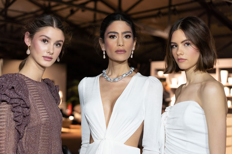 Designer aus Berlin, Deutschland und der ganzen Welt treffen sich hier mit Fachpublikum, Journalisten, Bloggern und Mode-Fans. Eine Woche lang ist Berlin der Nabel der Mode-Welt. Zu den Spitzen-Shows der Fashion Week zählen die Präsentationen der Promi-Designerin Lana Mueller sowie die fulminante Show der Designerin des Jahres 2017, Anja Gockel. Lana Mueller präsentierte ihre neue Kollektion am 13. Januar in einer ungewöhnlichen Location: der Königlichen Porzellan-Manufaktur Berlin, KPM. Feenhafte Roben, glitzernde Strick-Stoffe und zarte Farben standen bei der Mode im Mittelpunkt. Aber erst durch die passenden Schmuckstücke von Juwelier Leicht wurden die Looks vollkommen. Hier im Vordergrund: funkelnder Brillantschmuck aus dem eigenen Meister-Atelier.