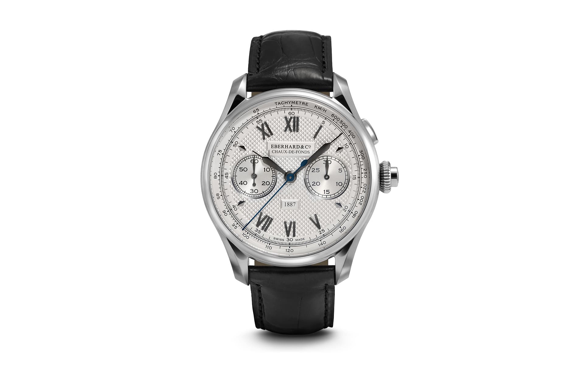 Dabei offenbart diese traditionelle Technik eine bemerkenswerte Vielseitigkeit, dies zeigen die einzelnen Modelle aus der Eberhard-Kollektion. In den Modellen der Linie „1887“, angetrieben von exklusiven Kalibern, unterstreicht das Clous-de-Paris-Motiv eine klassisch geprägte Ästhetik. Die Uhren sind auf Basis einer sorgfältigen Recherche zu den historischen Zeitmessern der Marke entstanden. Beispielsweise bei der „1887 Remontage Manuel“ rückt das Finish in Weiß oder Blau auf einem raffinierten, retroinspirierten Zifferblatt mit trapezförmigem Datumsfenster in den Mittelpunkt. Bei den beiden Modellen „Chronographe 1887 Automatique“ bereichert das Clous-de-Paris-Zifferblatt in Argenté oder Blau eine ohnehin vielschichtige Komposition: Farblich abgestimmte Totalisatoren mit Azuré-Dekor verstärken den visuellen Rhythmus und die Dynamik des Designs.