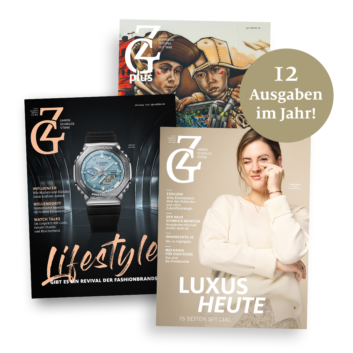 Sichern Sie sich noch heute ein Abonnement der GZ Goldschmiede Zeitung und verpassen Sie keine Ausgabe. Sie erhalten die Druckausgabe 12-mal im Jahr versandkostenfrei. Als Abonnent der Druckausgabe erhalten Sie das digitale Abonnement GZ+ kostenlos dazu.