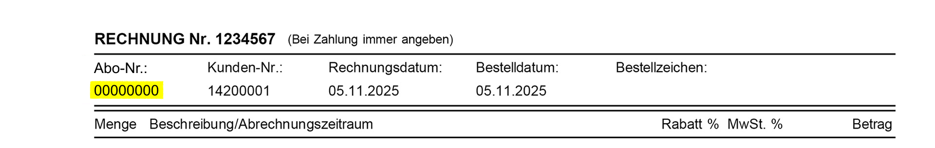 - Geben Sie Ihre Abonummer und Ihre Postleitzahl ein. Ihre Abonummer finden Sie z. B. auf dem Versandetikett Ihrer GZ oder auch auf Ihrer Abo-Rechnung.