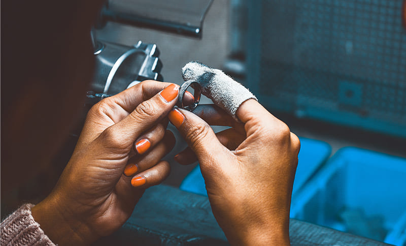 Schnell erkannte ich das Potenzial der besonderen Eigenschaften des Materials. Bis dahin arbeiteten zwar Schmuckkünstler mit dem Material, aber es gab noch keine kommerzielle Lösung für die Branche, nur einzelne Meisterwerke.“ Es brauchte noch Jahre intensiver Forschung und Entwicklung, bevor er mit Tantalum Trauringen an den Start gehen konnte. Das Material ist schwer zu bearbeiten, es braucht besondere Maschinen, Werkzeuge und viel Know-how. „Ich bin ein Prozessunternehmer, denn ich habe speziell für das Material Tantal einen neuen Produktionsprozess entwickelt, der traditionelles Goldschmiedehandwerk mit moderner Technologie verbindet – angefangen vom Konfigurator bis hin zur Fertigung mit hohem Handarbeitsanteil der Trauringe, die alle Unikate sind. Hier bin ich Pionier. Es gibt zwar mittlerweile auch andere Firmen, die mit Tantal arbeiten, aber keine hat so konsequent die gesamte Wertschöpfungskette speziell für dieses Material neu definiert. Wir brauchten viele Jahre, um das Material Tantal richtig bearbeiten zu können, und sind hier Pioniere mit der längsten Tradition. Es ist alles sehr komplex. Goldschmiede und Facharbeiter aus der Schmuckbranche durchlaufen bei uns eine grundlegende Transformation.