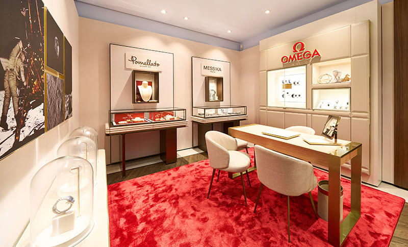 Ein weiteres Highlight des neuen Stores ist die Breitling-Bar, die Uhrmacherkunst und gehobene Barkultur vereint. Neben einer großen Auswahl erlesener Breitling-Uhren können Besucher hier in entspannter Atmosphäre Cocktails genießen. Die neue IWC-Lounge ermöglicht es, die Zeitmesser von IWC Schaffhausen in einem diskreten Ambiente zu entdecken. Auch der Trauringbereich schafft eine intime Atmosphäre – ideal für Paare, die eine vielseitige Ringauswahl entdecken möchten.