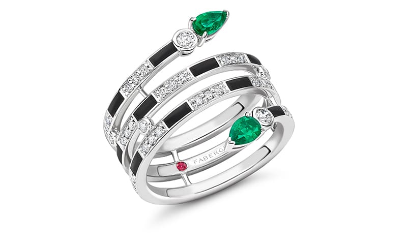 Fabergé schreibt zu den Neuheiten: „Diese zeitgenössischen Stücke können einzeln oder zusammen als Set gestylt werden, wobei jedes Design eine Hommage an ein Schlüsselthema oder eine Figur aus dem kommenden Film „Beetlejuice Beetlejuice“ darstellt. Die Farbpalette wurde sorgfältig ausgewählt, um die Farbtöne der Kostüme der Hauptfiguren widerzuspiegeln.“