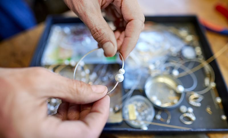 „Mit den klassischen Perlohrringen fängt die Liebe zu der Perle an“, weiß Eva Strepp. „Perlenstecker sind einfach toll, egal wie groß die Perle ist. Sie passen einfach super zu jedem Anlass und Outfit und sie betonen sehr schön die Augen. Nun registrieren wir eine verstärkte Nachfrage nach Armbändern mit Perlen. Es handelt sich dabei um feine Drahtbändchen mit einem Verschluss. Eigentlich das, was ich persönlich auch am liebsten habe – so ganz unkompliziert anzulegen und zu tragen, eng am Handgelenk anliegend, damit man nirgendwo im Alltag hängen bleibt und das Armband immer perfekt ausgerichtet sitzt.“