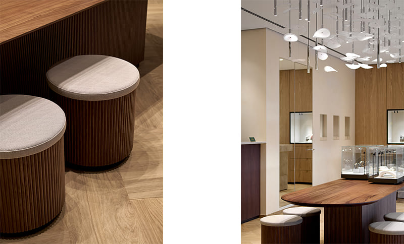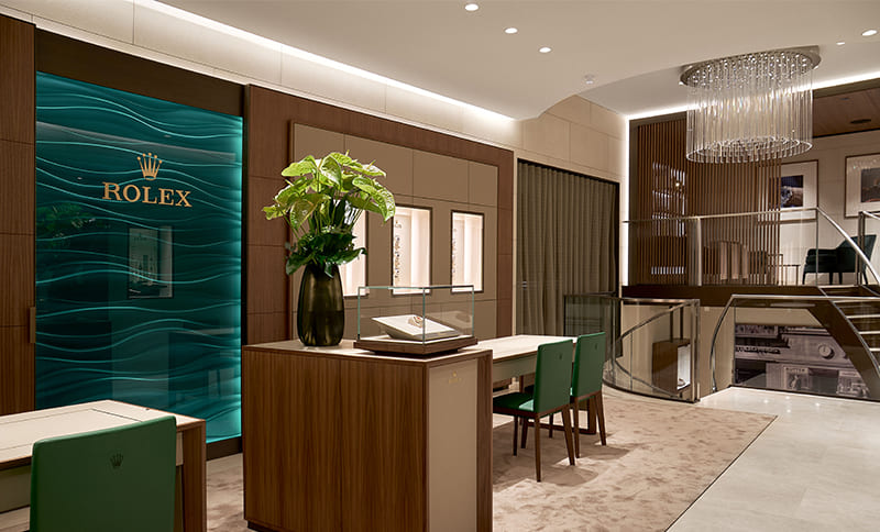 Im Mittelpunkt des neuen Stores steht nun auch ein exklusiver Bereich, der speziell der Marke Rolex gewidmet ist und mit einem aufwendigen Einbau eindrucksvoll in Szene gesetzt wurde. Im unteren Bereich angekommen, wird man von einer Bar empfangen. Separees in gemütlicher Wohnzimmer-Atmosphäre bieten Raum für diskrete und persönliche Beratungen zu Uhren und Schmuck. Das neue Ambiente vermittelt den Eindruck, nicht nur bei einem Juwelier seines Vertrauens, sondern vielmehr im Wohnzimmer bei Freunden zu sitzen. In jedem der Separee präsentieren sich zusätzlich monatlich neue Highlights des Juweliers, welche schon durch ihre minimalistische Präsentation und dem speziellen Fokus auf das Produkt den Wert der Uhren und Schmuckstücke darstellen und den Kunden immer einen Anlass für Inspirationen gibt.