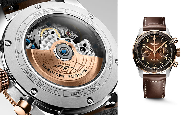 Im Inneren arbeitet das Longines Kaliber L791.4, das von der COSC als Chronometer zertifiziert wurde und eine Gangreserve von bis zu 38 Stunden bietet. Es kann durch den Saphirglasboden betrachtet werden.