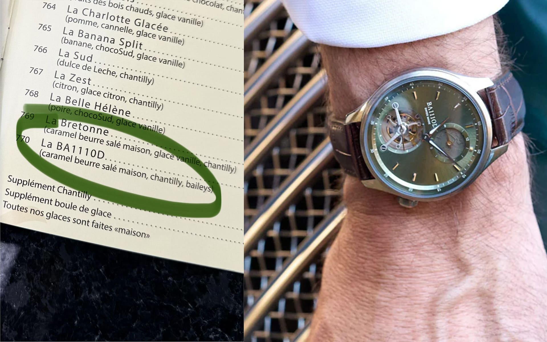 Thomas Baillod, Gründer der gleichnamigen Uhrenmarke, hat jüngst verkündet: Seine Lieblingscrêperie habe auf seinen Vorschlag hin die Karte um ein Crêpe mit gesalzener Karamellbutter und Baileys erweitert, das er auf einer Südfrankreichreise kennen und lieben gelernt habe. Daraus ist nicht nur diese Erweiterung der Menükarte entstanden, sondern auch eine kreative Marketingidee: Wer mit einer Ba111od-Uhr am Handgelenk in die Crêperie am Place du Coq d’Inde in Neuchâtel kommt, erhält jenes Crêpe einmal monatlich kostenlos. Regulär kostet die Speise 11,10 Schweizer Franken.