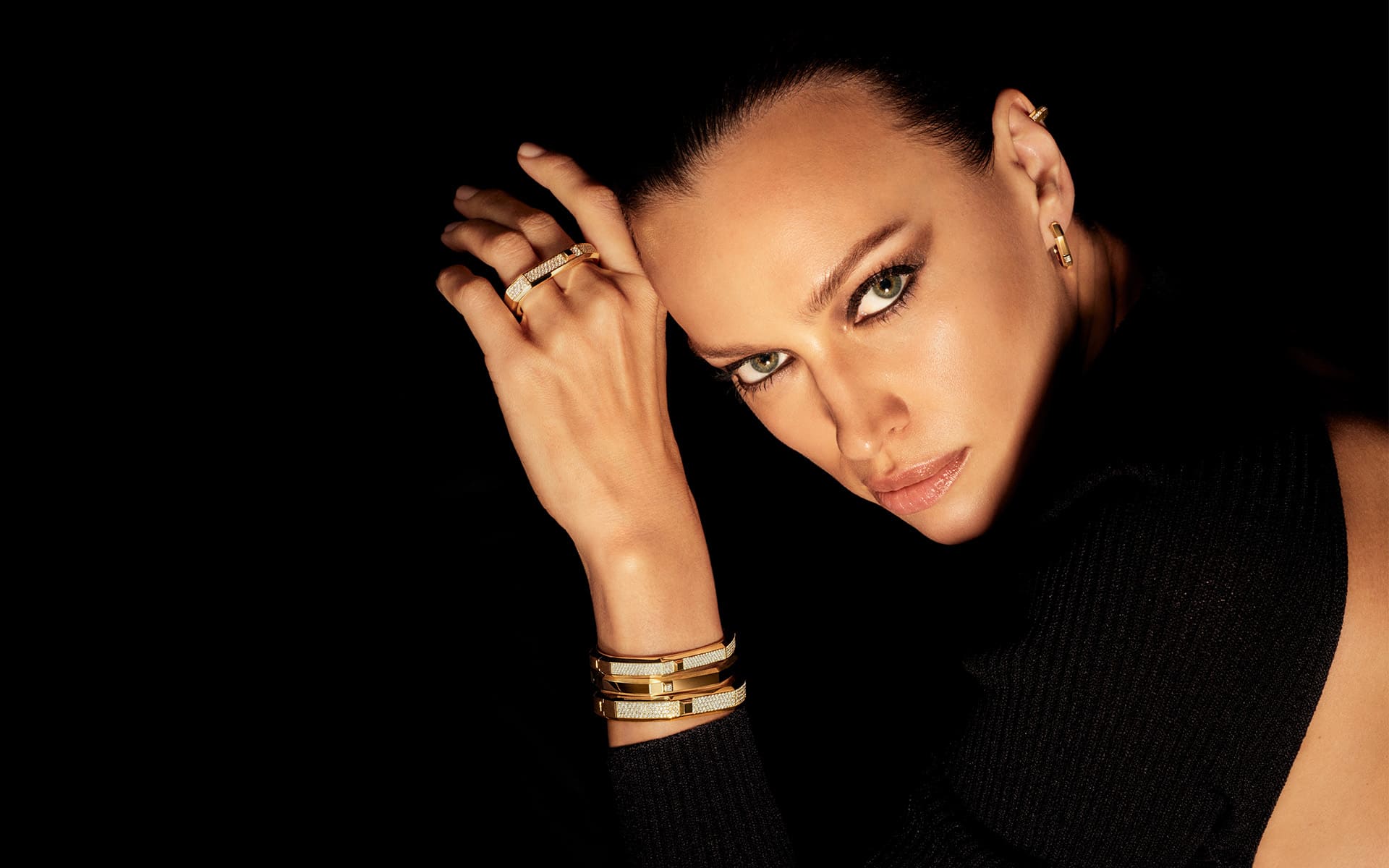 Unter der kreativen Leitung von Ezra Petronio zeigt die neue „Moderniste“-Kampagne Porträts von radikaler Klarheit: Schwarzer Hintergrund, präzises Licht, leuchtendes Gold. Die Kampagne setzt auf die Kraft der Reduktion. Jedes Bild ist auf das Wesentliche konzentriert und steht für Präsenz und Persönlichkeit. Während die Motive mit Julianne Moore Weiblichkeit intim, leuchtend und persönlich interpretieren, verkörpert Irina Shayk eine kühne, grafische und selbstbewusste Dimension.
