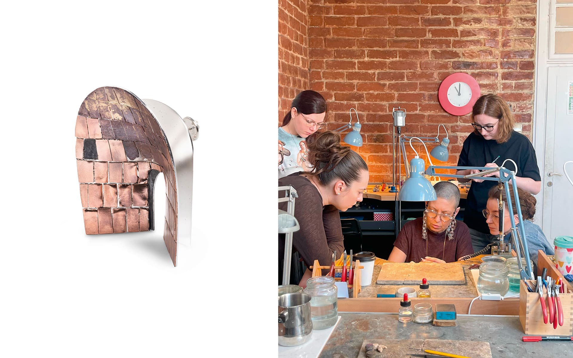 Auszubildende und Lehrende sind an allen Ständen präsent und geben mit Kompetenz, Erfahrung und Geduld Auskunft. Präsentiert werden zudem Bachelor- und Masterarbeiten sowie die Ergebnisse von Projekten und Kooperationen. Die diesjährigen Aussteller sind die Goldschmiedeschule mit Uhrmacherschule Pforzheim (B2, 534), die sich einen Stand mit der Berufsfachschule für Goldschmiede und dem Berufskolleg für Gestaltung teilt, die Hochschule Trier, Campus Idar-Oberstein (B2, 445), die Städtische Meisterschule für das Gold- und Silberschmiedehandwerk (B2, 441), die Staatliche Zeichenakademie Hanau (B2, 439) sowie die Gallery of Art aus dem polnischen Legnica und die rumänische Assamblage Schule (B2, 435). Andreia Gabriela Popescu, Künstlerin und Professorin an der 2010 gegründeten Bukarester Schule für zeitgenössischen Schmuck, fasst deren Grundidee so zusammen: „Assamblage bedeutet lernen, üben, experimentieren, transformieren und gestalten.“ Alle weiteren Fragen beantwortet sie vor Ort.