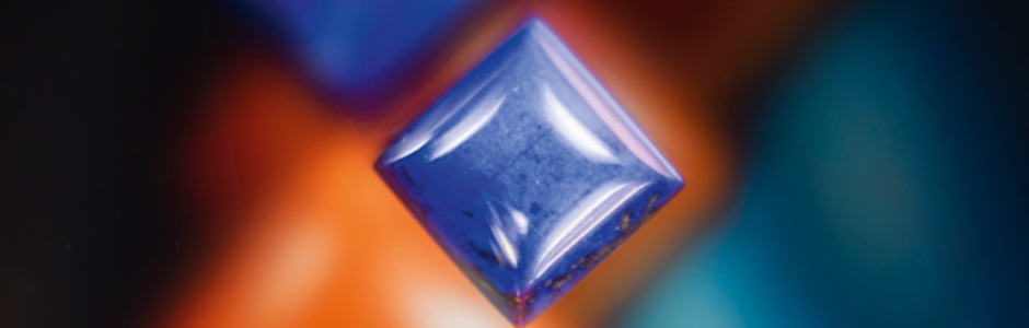Carré aus afghanischem Lapis mit 14 mal 14 Millimetern, Carré aus taiwanesischer Momo-Koralle mit 17 mal 17 Millimetern sowie Tropfen aus Türkis von der „Sleeping- Beauty“-Mine in Arizona mit 30 mal 19 Millimetern (v. o.).