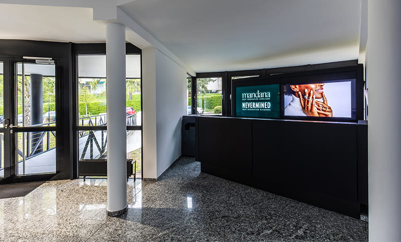 Der neue Standort macht der funkelnden Diamant-Branche alle Ehre: Die runde Eingangshalle erinnert von außen an einen Brillantschliff von oben. Und wer auf den Haupteingang zusteuert, muss eine elegante Brücke passieren – ein Übergang in ein neues Diamant-Zeitalter, im wahrsten Sinne des Wortes. In den neuen hochmodernen Räumlichkeiten mit bodentiefen Fenstern und offenen Flächen stehen alle Zeichen auf Fortschritt und Transformation.