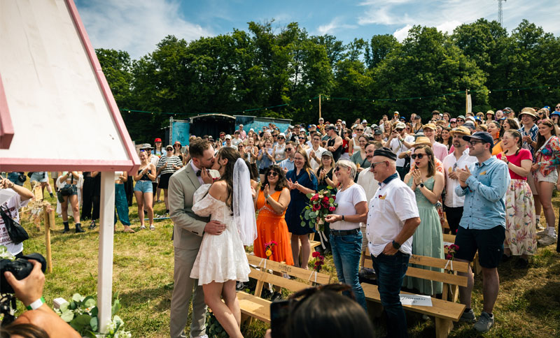Trauringe statt Bändchen, Ehegelübde statt Zugabe-Rufe: Auf dem Happiness Festival sorgte die ...