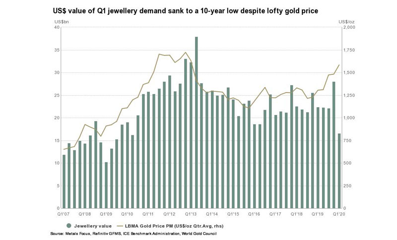 Die Goldnachfrage stieg im ersten Quartal um ein Prozent auf 1.083,8 Tonnen gegenüber dem ...