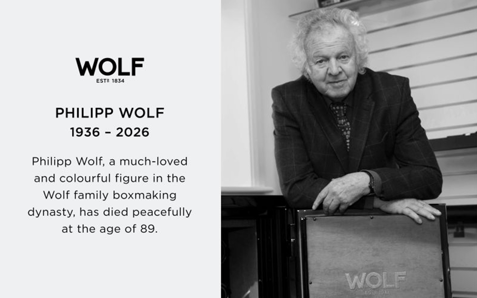 Die internationale Schmuck- und Uhrenbranche trauert um Philipp Wolf, der im Alter von 89 Jahren friedlich verstorben ist, wie das Unternehmen mitteilt. Als prägende Figur der Wolf-Dynastie hat er die Entwicklung hochwertiger Schmuck- und Uhrenetuis über Jahrzehnte entscheidend mitgestaltet.