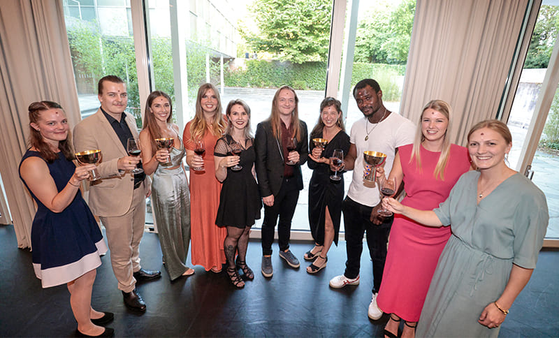 Georg Wellendorff überreichte den Preis und gratulierte allen Absolventen herzlich zur Erhebung in den Meisterstand. Dabei betonte er die Bedeutung des Goldschmiedehandwerks und würdigte die Erlangung des „schönsten Berufes der Welt“, bei dem es nicht nur um die Arbeit mit feinsten Materialien, sondern auch um die tiefgründige Bedeutung von Schmuck geht.