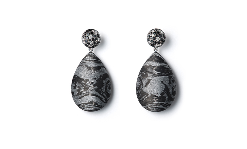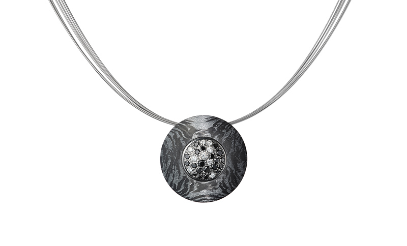 Uwe Fiedler, der kreative Kopf von Schwab, überrascht immer wieder mit innovativen Kombinationen von Materialien. In München präsentiert er unter anderem Schmuck aus Carbon mit Alu in Verbindung mit Platin.
