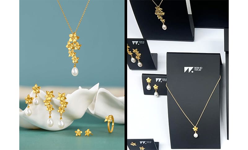 Frischen Wind in Form von neuen Produkten erhielt die Sonne- und Mond-Kollektion, die den Sonnenauf- und -untergang symbolisiert und die Linie Aurum 585 mit je einem Kern aus massivem Gold und sonnig-warmer „Bernd Wolf 24-Karat-Goldplattierung“, dem besonderen Markenzeichen der Schmuckmarke. Ebenso gab es für Partnerjuweliere und Interessenten Neuheiten zu begutachten, die Farbedelsteine in kleinen Cubes in den Mittelpunkt stellen und das Ergebnis einer siebenjährigen Entwicklungsphase sind, sowie ein Neuzugang der Edelsteinkollektion, der Apatit, der von nun an Schmuckstücke der Manufaktur aus dem Dreisamtal ziert.