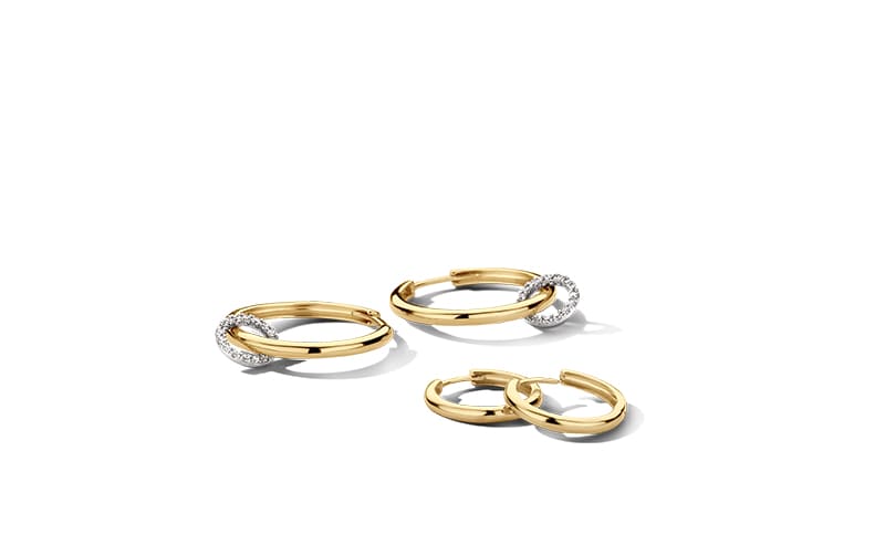 Die Kollektion besteht aus 585er Gold mit handgefassten Zirkonia. Die große Auswahl an Ringen, Armbändern, Halsketten, Anhängern und Ohrschmuck bietet endlose Kombinationsmöglichkeiten. Die Blush-Kollektion ist in Gelb-, Weiß- und in geringerem Umfang auch in Roségold erhältlich.