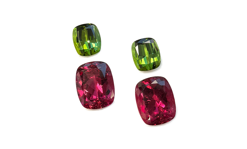 Farben sind Mutmacher. Damit der Start in die Edelsteinsaison 2024 gelingt, hat das Familienunternehmen aus Kirschweiler bei Idar-Oberstein wieder eine farbenfrohe Auswahl feinster Steine im Messegepäck. Ein Beispiel ist „Cushion Harmony“, eine exklusive Designidee für Ohrringe. Die perfekt im Kissenschliff gearbeiteten moosgrünen Turmaline und leuchtenden Rubellite weisen eine besondere Ästhetik auf. Die harmonische Komposition be-steht aus insgesamt vier nicht erhitzten Edelsteinen. Diese kostbaren Schätze stammen aus Nigeria und kommen auf ein Gesamtgewicht von 52,84 Karat. Neu ist auch das Collier aus 132 Aquamarinen und einem Morganit als besonderen Blickfang. Es kommt auf beeindruckende 86,66 Karat.