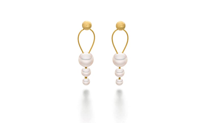 Zeitlos elegant: Ohrringe und Halsschmuck aus Strepps neuer Linie „Lumi“, gefertigt aus Stahl und Silber goldplattiert mit Süßwasserperlen in der Größe von drei bis acht Millimeter Durchmesser.