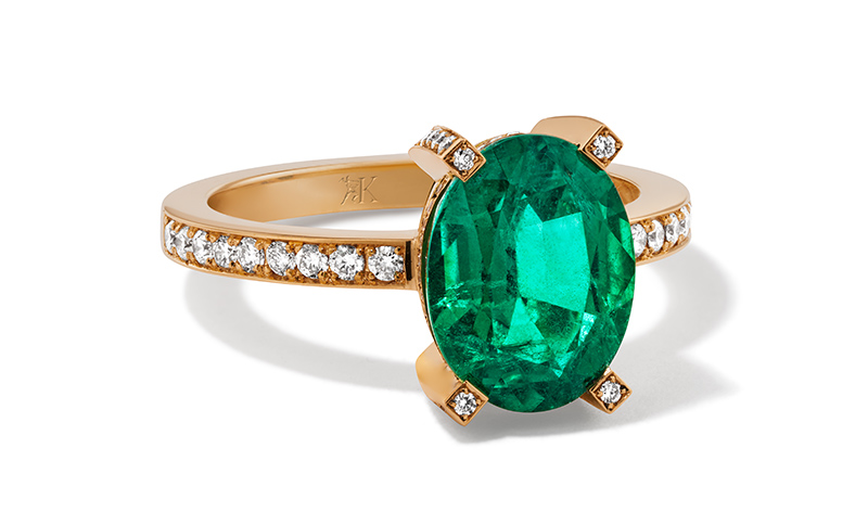 Der Ring in 750 Rotgold mit einem 2,93 ct. schweren Smaragd und 70 Brillanten zeigt die Handwerkskunst von Hans D. Krieger Fine Jewellery.