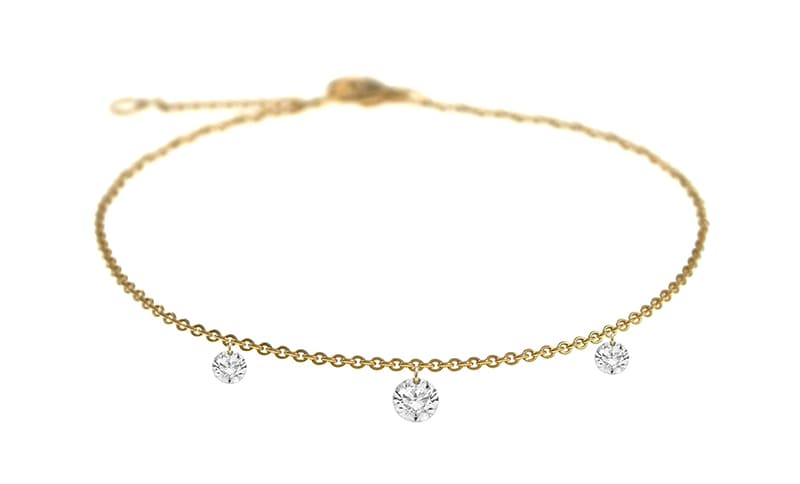 • Frei schwebend wirkende, naturgewachsene Diamanten („drilled“)