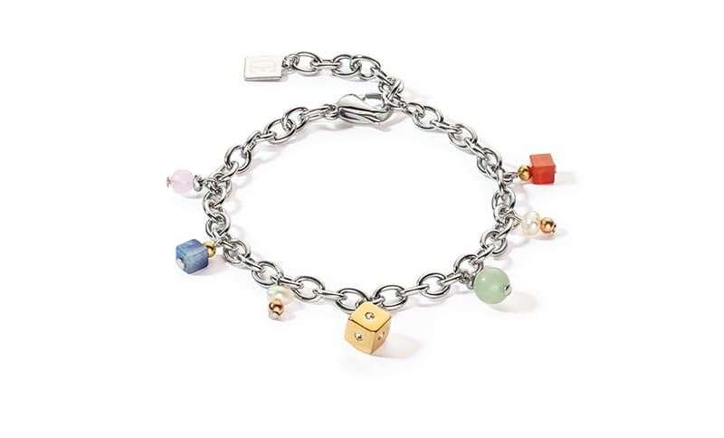 Markante Formen und eindrucksvolle Farbspiele ziehen sich wie ein goldenes Band durch die Kollektionen der Stuttgarter Kreativschmiede Coeur de Lion. Geometrie und Farbenfreude stehen auch 2023 im Mittelpunkt der Kollektionen, die dem aktuellen Zeitgeist folgen. Sie sind frisch wie der Frühling, farbenfroh wie der Sommer und zaubern mit ihren multiplen Tragemöglichkeiten immer wieder neue Glanzpunkte in die Outfits ihrer Trägerinnen. Der Stuttgarter Trendsetter versteht es, seine Kunden abzuholen und mit ihnen Jahr für Jahr gemeinsam auf eine spannende und abwechslungsreiche Schmuckreise zu gehen. Gänzlich unkompliziert, lässig und variantenreich präsentiert sich die neue Pearl-Edition „Bohemian Double“. Hier umschmeicheln tanzende Details wie Würfel oder Ronden das filigrane Design und bringen Schwung und Farbe in den Alltag. Die dynamische Multicolor-Variante überrascht im heiteren Mix aus herzöffnendem Rosenquarz, zartem Perlmutt, echter Süßwasserperle, temperamentvollem Karneol und einer Abwechslung aus grünem und blauem Aventurin. Die warmen Goldtöne der anmutigen Klassik-Variante dagegen harmonieren dezent mit grauem Achat, der für Geborgenheit und Sicherheit steht. Zwei Uhrenmodelle ergänzen den lässigen Bohemian Style von Coer de Lion.
