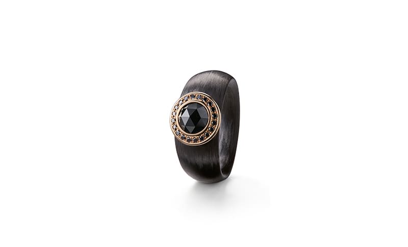 Schwarz, geheimnisvoll und haptisch ein Erlebnis: Die Carbon-Kollektion von Schwab bietet Schmuckkultur vom Feinsten.