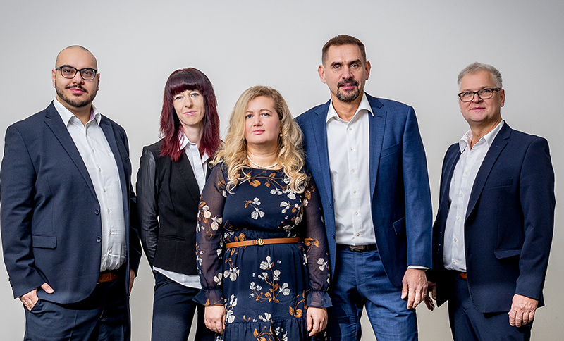 Das Bild zeigt das ganze Agosi-Manufaktur-Team auf der Inhorgenta: Daniele Racalbuto, Simone Scheffelmeier, Irene Brose, Stefan Röse und Jürgen Maisenbacher (v. l. n. r.).
