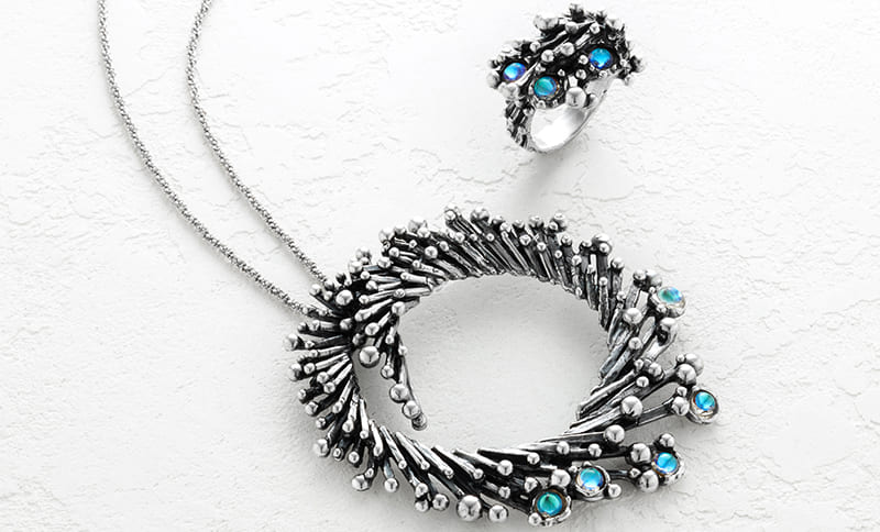 Ganz ohne die sonst übliche Anlehnung an bildende Kunst scheint die neue Kollektion von Giovanni Raspini fast eine Einladung zu sein, eine Welt voller Licht und Schatten zu erforschen, die die typischen Hell-Dunkel-Kontraste der menschlichen Gefühlswelt aufweist. Das Bedürfnis, Emotionen zu wecken, kennzeichnet sämtliche Kollektionen für die nächste Frühjahr-Sommer-Saison: Fireworks, Stone, Optical und Millefiori. Als gelungene Verknüpfung zwischen Raspinis naturalistischer Berufung und seinem Wunsch, neue Horizonte zu erforschen, ist Fireworks aus handbrüniertem Silber gefertigt und eine wahre Explosion von Licht und Farbe: Dank des Kontrasts mit der Brünierung bricht das Silber einem Feuerwerk gleich hervor und verbindet sich mit den changierenden Farben der Mystic-Quarze. Mit der aus gehämmertem Silber bestehenden Kollektion Stone setzt die Marke dagegen ihre Oberflächen-Experimente fort. Das Licht betont so den plastischen, stofflichen Aspekt der Schmuckstücke, bei der Version aus Silber ebenso wie bei der aus vergoldetem Silber. Vervollständigt wird das Angebot für die kommende Saison durch die Kollektionen Optical, die augenzwinkernd an die Mode der 1960er Jahre erinnert, und Millefiori mit dank funkelnder Diamantierungen besonders stark ausgeprägten Licht- und Schatten-Effekten.