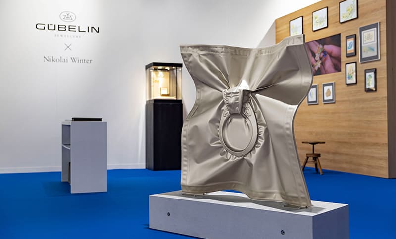 Bei der Kunstmesse artgenève präsentierte Gübelin den Cocktailring „Royal Allure“ in Kooperation mit dem Schweizer Künstler Nikolai Winter. Dieser hat den Cocktailring als Inspiration für Kunstwerke genommen.
