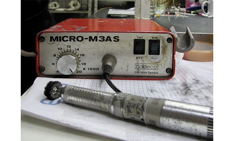 2008 wurde das 1945 gegründete Unternehmen von Amir Hoveyda, einem Ingenieur persischer Herkunft mit einer Leidenschaft für Präzisionsinstrumente, übernommen. Da sich der Sitz des Herstellers in Genf befindet, regen die Fertigungserfordernisse der Uhrmacherei und der großen Schweizer Marken Badeco naturgemäß zu intensiver Forschungs- und Innovationsarbeit an. Dank der klaren Ausrichtung auf technologischen Fortschritt ist das Unternehmen in der Lage, eine breite Palette ausgefeilter Instrumente für viele Bearbeitungsschritte anzubieten – ob Polieren oder Fassen, Abschrägen, Putzen, Feinschleifen, Gravieren oder Bohren. Neben den Verkaufsschlagern wie Mikromotoren, Handstücken, den 1966 von Badeco erfundenen Fasserhammern und Nanomotoren umfasst der Katalog des Schweizer Herstellers auch Polierstationen und binokulare Leuchten.