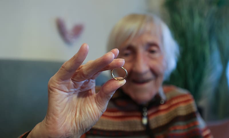 Es war wohl einer der schönsten Zufälle: In einer Kartoffel fand Maria D. aus Wettenberg-Wißmar einen lange verschollenen Ehering. Als es beim Kauen plötzlich komisch wurde, entdeckte die 91-Jährige, dass die Ursache kein Wurm oder ähnliches war, sondern ein Ehering von Niessing. Der Ring ist auf einem Kartoffelacker verloren gegangen, eine Kartoffelknolle wuchs drumherum und so fand der Ring wieder seinen Weg zurück an die Oberfläche. Die Finderin des „Kartoffelrings“ hat jetzt von Niessing einen neuen Ring bekommen, nachdem sie ihren eigenen vor einigen Wochen verloren hatte.