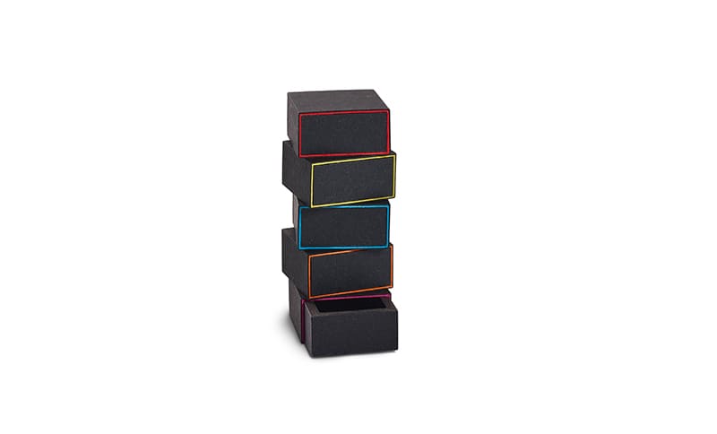 Das gilt für die Materialien wie Papier und Filz ebenso wie für die Produktion im eigenen Haus. Zudem verweist Pica durch Kooperationen mit exklusiven Partnern auf nachvollziehbare Lieferketten. Neu im Sortiment sind unter anderem die Schiebeschachteln „Fineline“. „Im Englischen ist eine `fine line´ der kleine, aber wichtige Unterschied zwischen zwei Dingen“, erläutert Inhaberin Susanne Weege und findet: „Eine sehr gute Definition für unsere neuen Schachteln“. Die leuchtende Farbigkeit der Banderolen schafft einen spannenden Kontrast zwischen dem Äußeren und dem Kern der Schachtel. Die Hüllen in fünf unterschiedlichen Farben umschließen den Kern aus schwarzem MDF, der mit recyceltem Papier bezogen ist. Die neuen Einlagen aus Wollfilz sorgen für eine sichere Aufbewahrung und hervorragende Präsentation.
