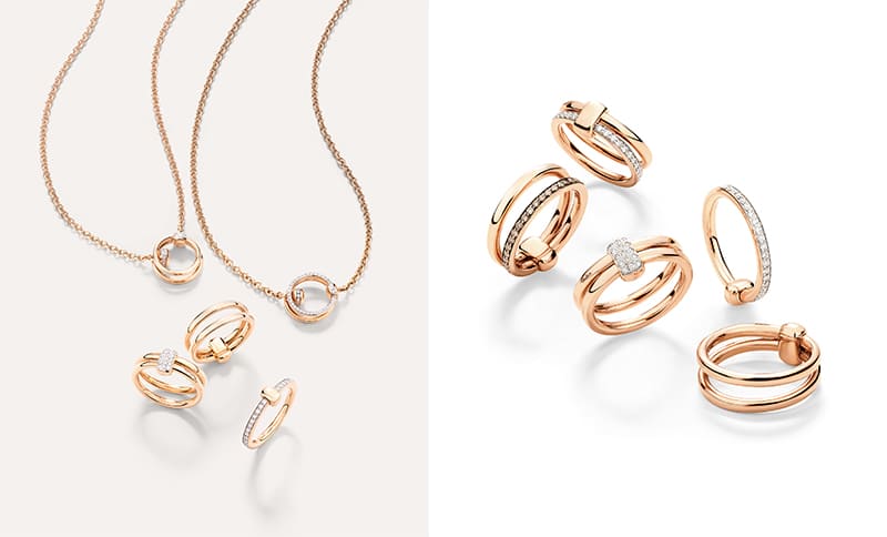 Der Linie „Pomellato“ Together erweitert die Manufaktur nun um zwei neue, kreisförmige und zueinander passende Anhänger sowie, Armbänder Creolen und Ringe. Die Schmuckstücke sind je aus zwei beweglichen Elementen zusammengesetzt und bieten luxuriöse Diamant-Details. Die beiden Teil sind je durch ein Verbindungslied verbunden, das ein Symbol für Stärke und Zusammenhalt sein soll, wie Pomellato die Inspiration für dieses Design erläutert.
